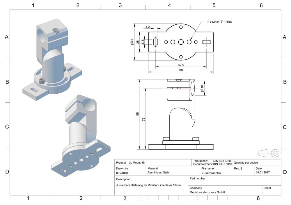 Stabile, justierbare Halterung für 18 mm Linienlaser Module.
