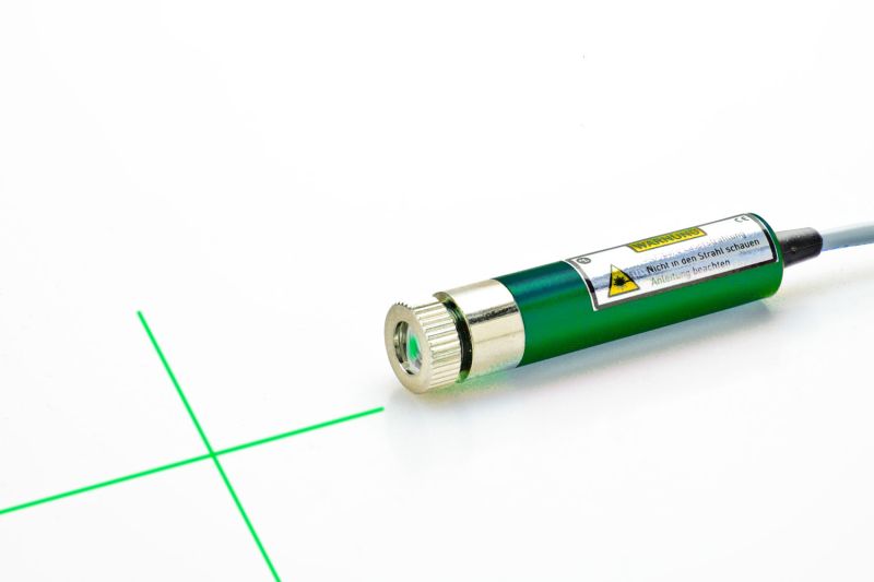 Small but powerful "all-rounder" green 40 mW cross line laser module with very good visibility for integration in machines. High reliability and long service life due to adjustable focus and line position.