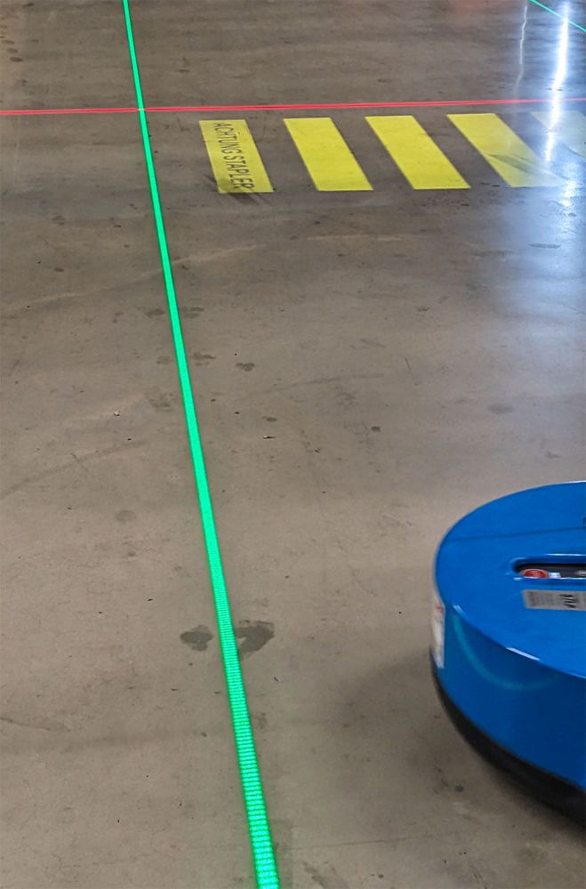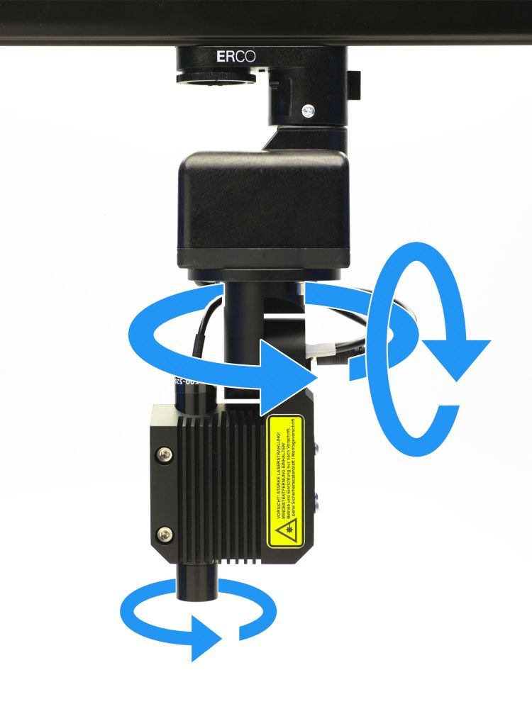 Abrasion-proof, bright laser lines, high visibility, for projection of routing lines on floors or industrial hallways. Fits to Erco compatible power rails.